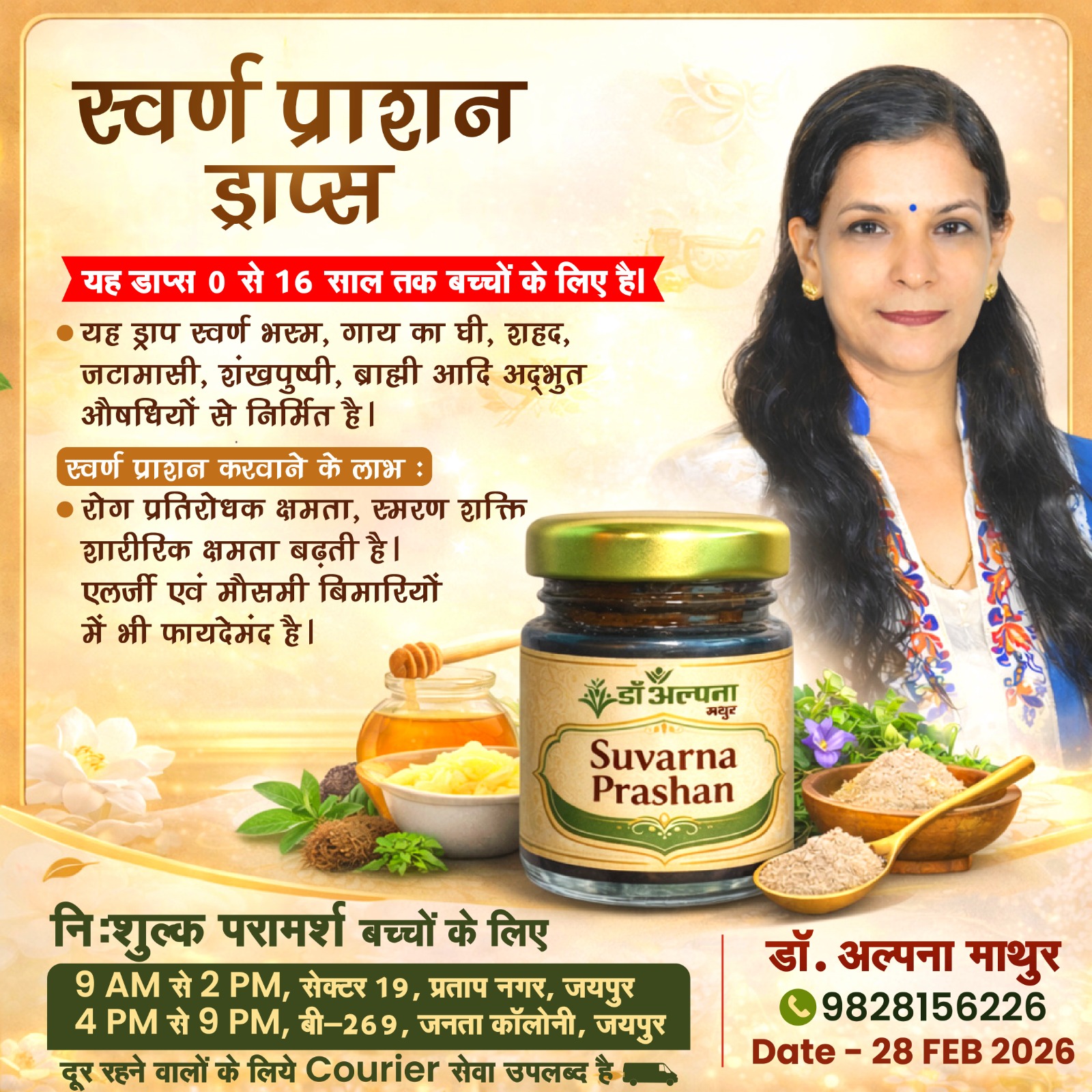 Suvarna Prashan is usually administered on the auspicious Pushya Nakshatra, believed to enhance nourishment and positive effects. It is valued as a preventive healthcare approach that helps boost immunity, improve memory and concentration, and support overall growth and development.